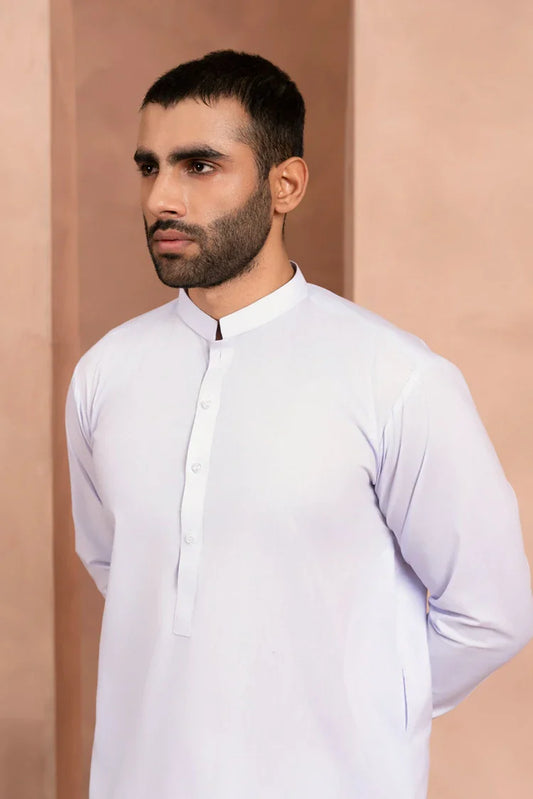 It is mostly on the front plackets and collars, with a similar shade to the rest of the attire. Moreover, in terms of color vibrancy, you can wear our shades like goldenrod and firebrick. Besides, you can even pick white for men’s stitched salwar kameez online shopping in Pakistan, in order to attend the formal events.