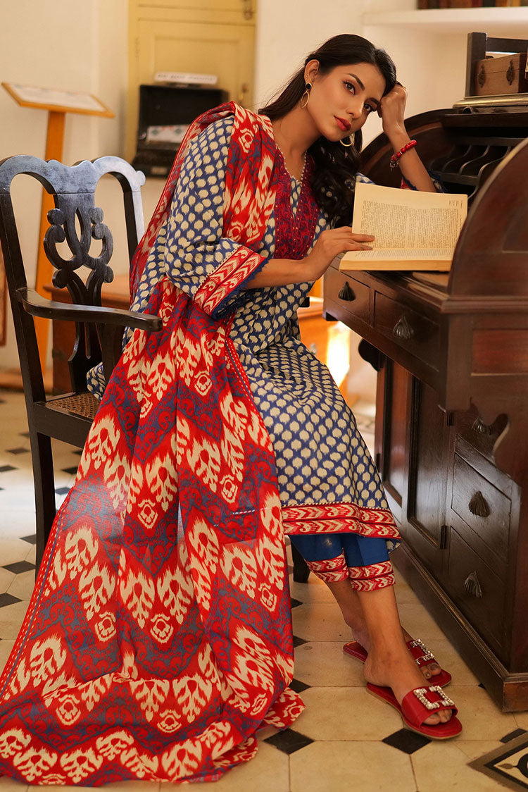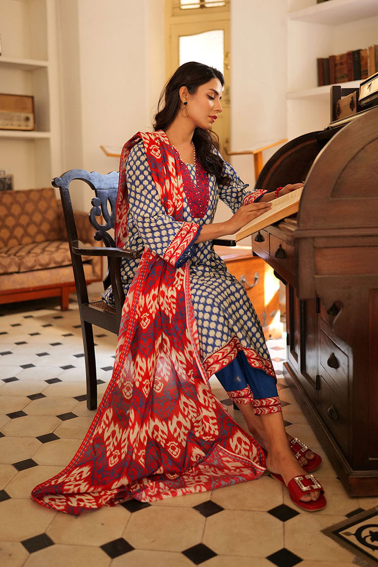 Senorita - LAD-02213 | Blue & White | Casual 3 Piece Suit | Cotton Lawn Print