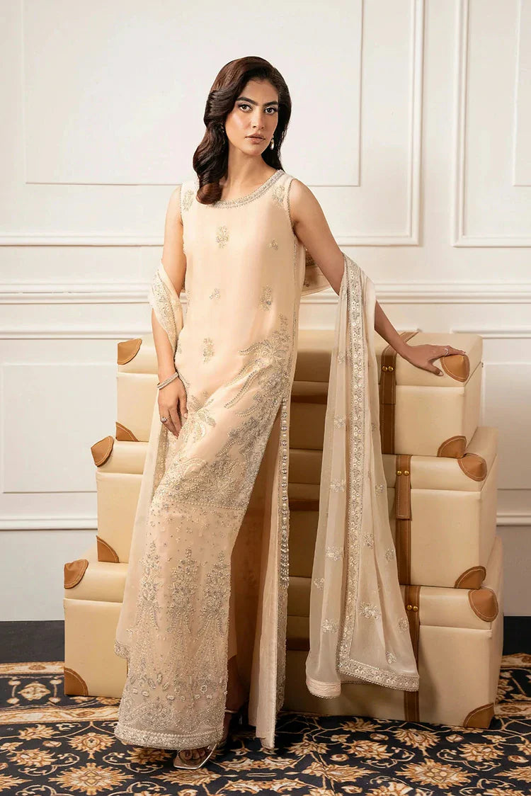 Zarizaa - Check In 5 Series Chiffon Collection - 3C-Creme - Unstitched