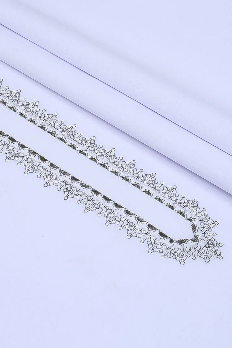 Fabrich - Men's Embroidered Unstitch Kameez Shalwar - White