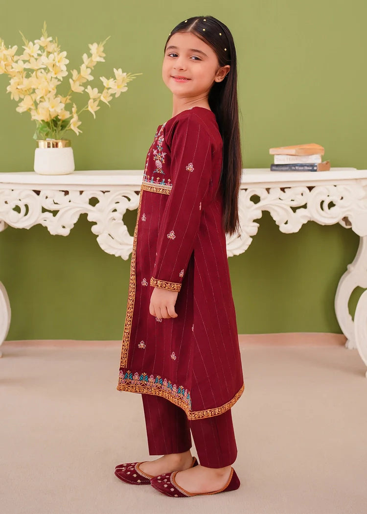 Modest - 3 Piece Embroidered Maroon Khaddar Suit