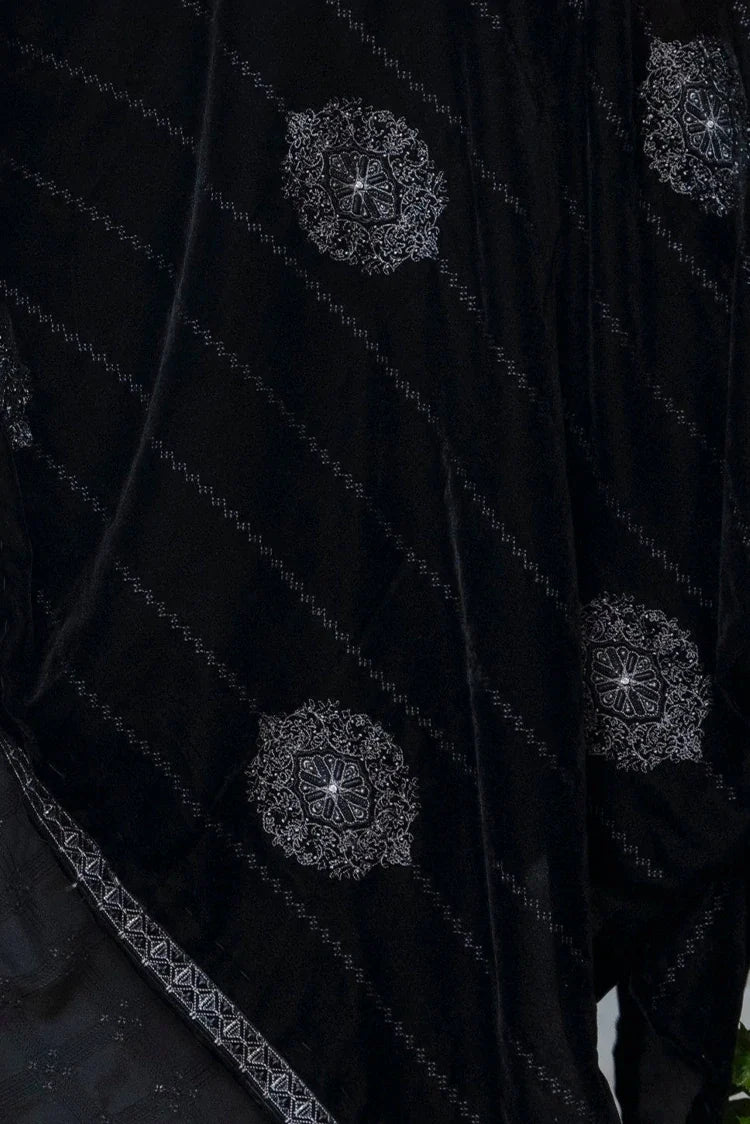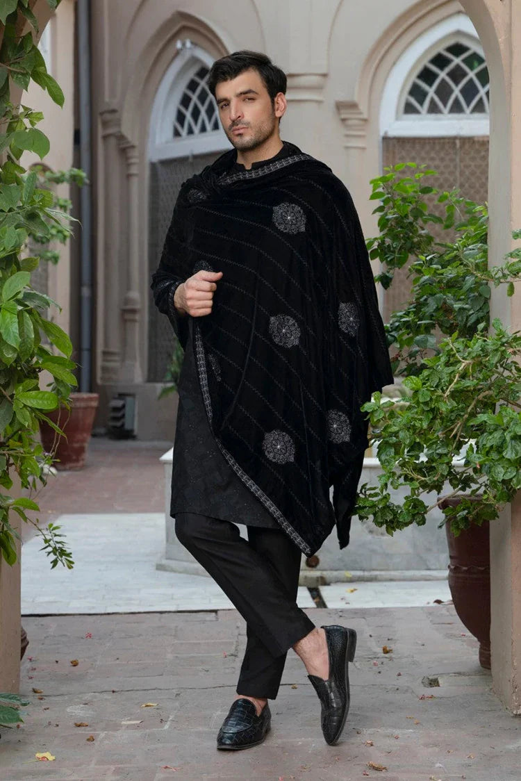 Fabrich - Mens Luxury Embroidered Velvet Shawl - Black
