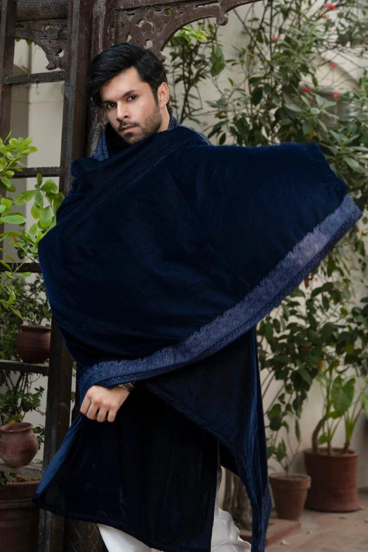 Fabrich - Mens Luxury Embroidered Velvet Shawl - Navy