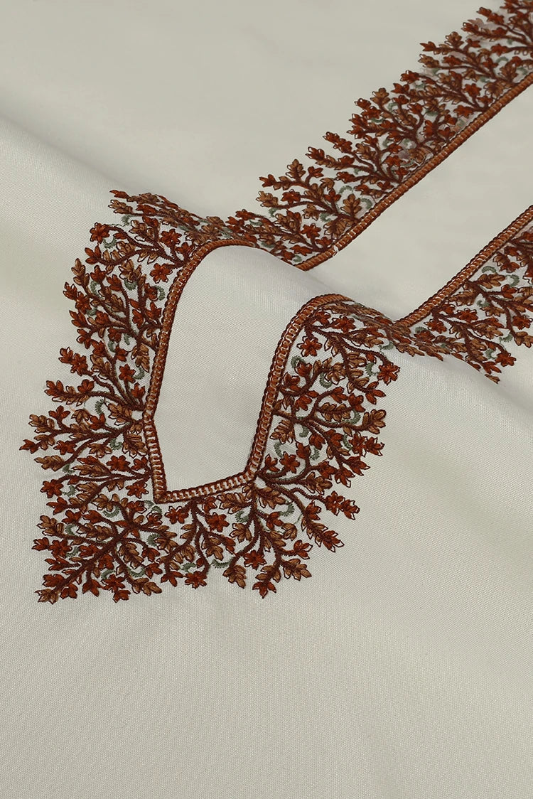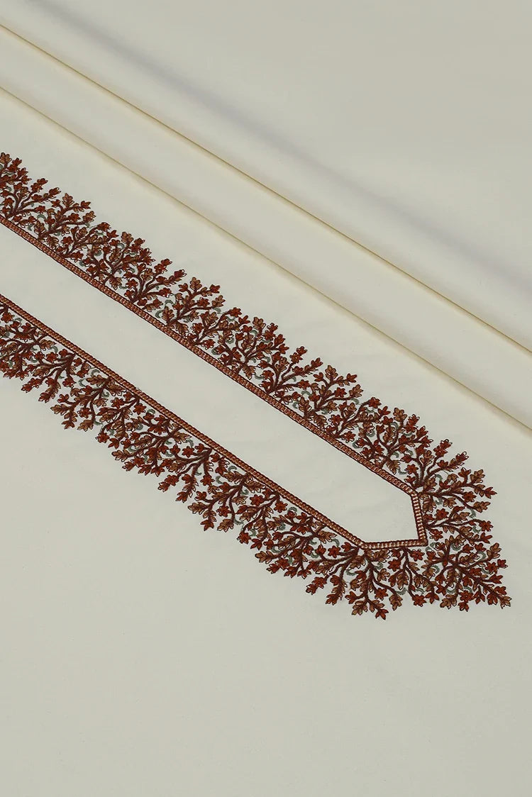 Fabrich - Men's Kashmiri Embroidered Wash 'N Wear Fabric Unstitch Kameez Shalwar - Cream