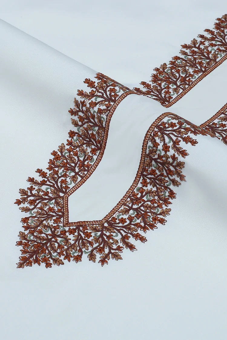Fabrich - Men's Kashmiri Embroidered Wash 'N Wear Fabric Unstitch Kameez Shalwar - Off-White