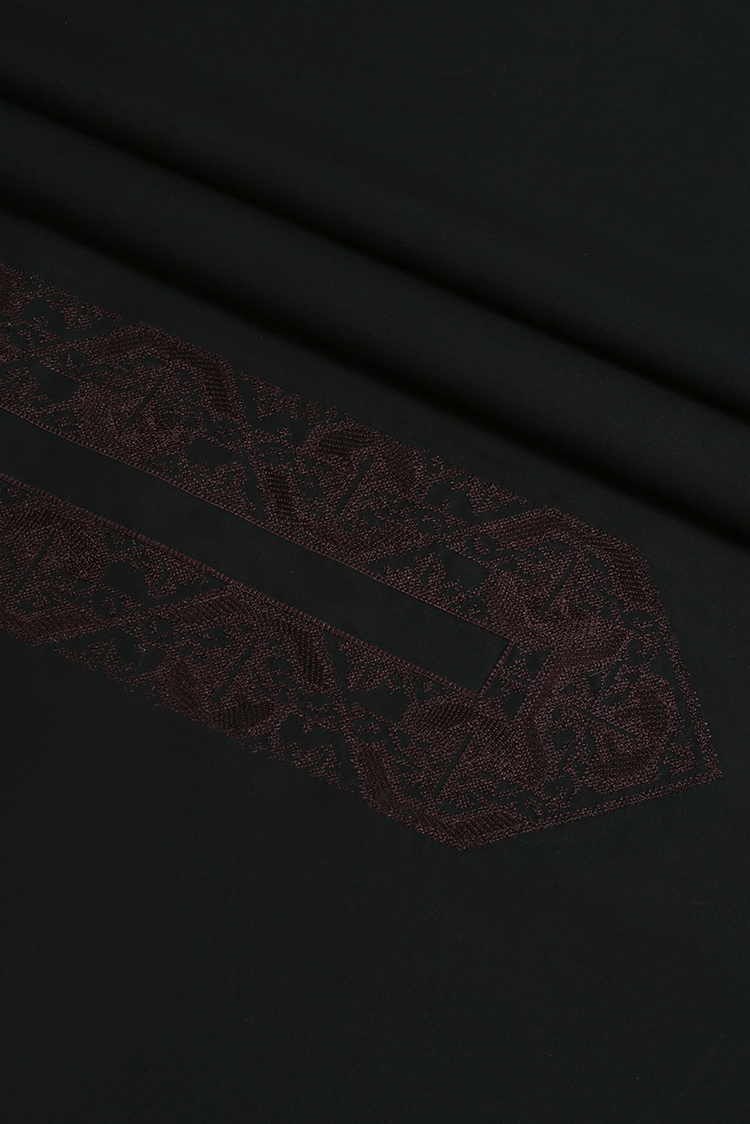 Fabrich - Men's Unstitch Cross-Print Stitch Effect Embroidered Neckline - Black