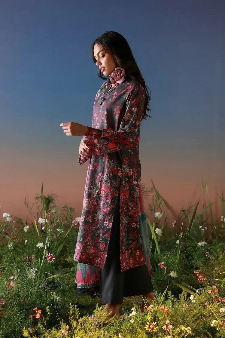 Sahar - Mirha Printed Lawn Collection - SS1-26-09-Noir Roseraie - Unstitched