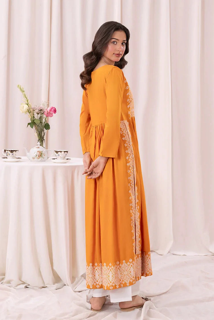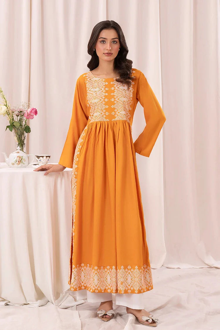 Zeek - Mustard Yellow Printed Long Kurta, Sleeves Separate Attatch - D2035