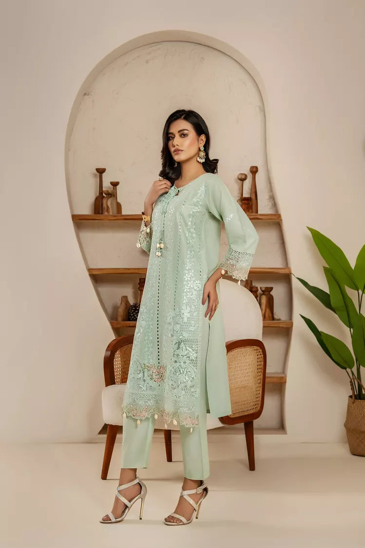 Khubsurat - 3 Pieces Ready To Wear - Pista - 4114-KH-CT