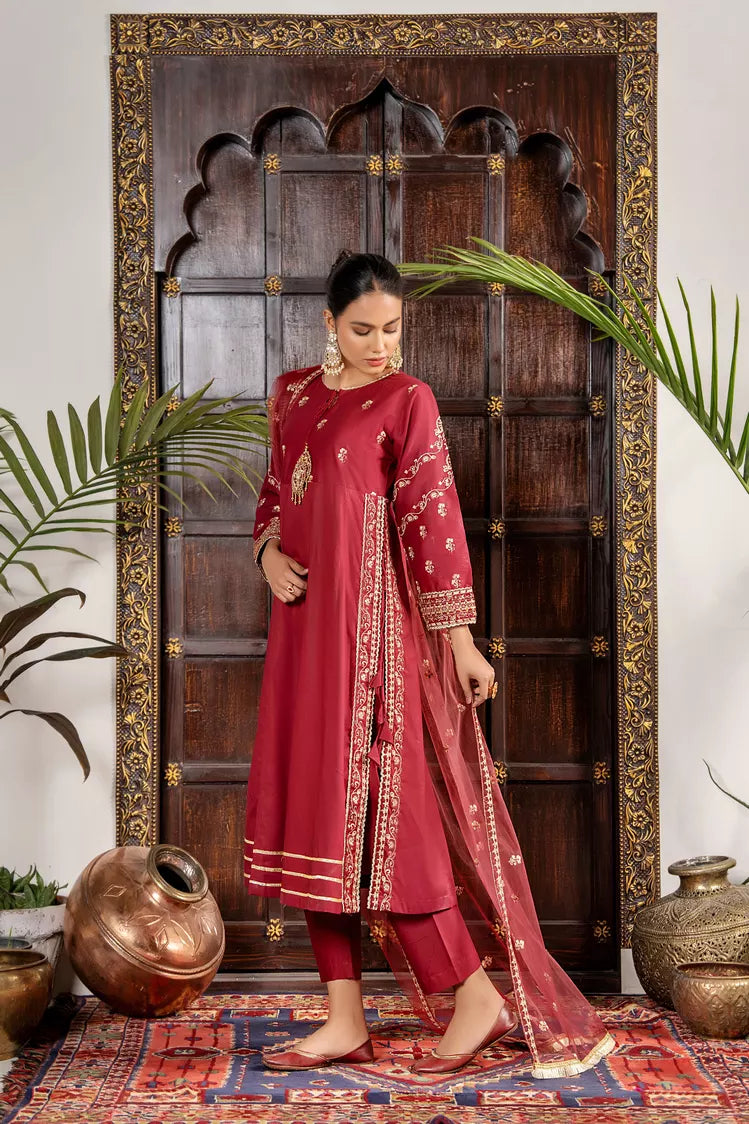 Khubsurat - 3 Pieces Ready to Wear - Maroon - 4144-KH-CT