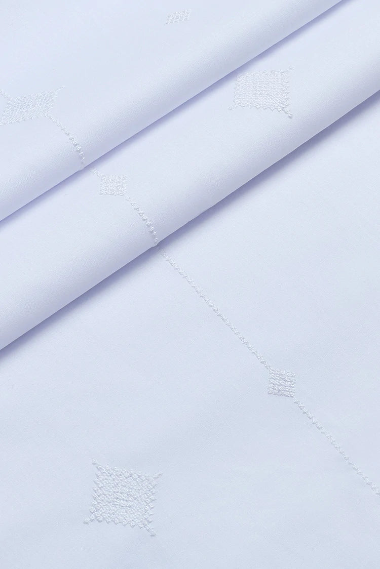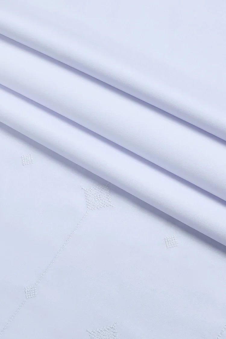 Fabrich - Men's Unstitch Allover Cotton-Thread Embroidered Kameez Shalwar - White